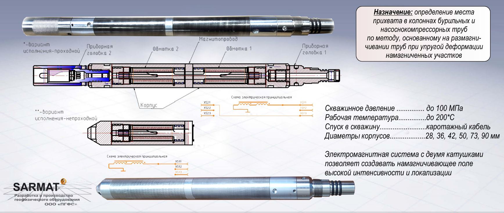 Прихватоопределители служат для определения места прихвата в колоннах бурильных и насоснокомпрессорных труб по способу, основанному на свойстве размагничивания